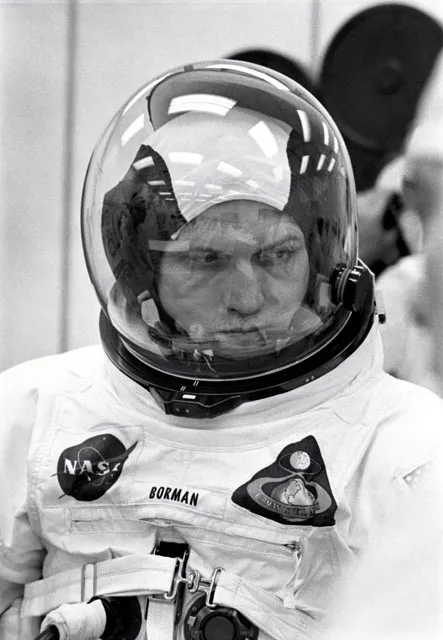 Frank ‘Squarehead’ Borman inside the custom made $45,000 helmet NASA had made to fit his extraordinary large head.