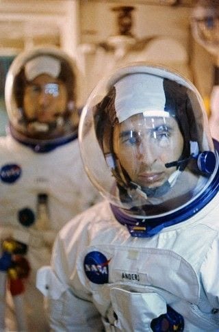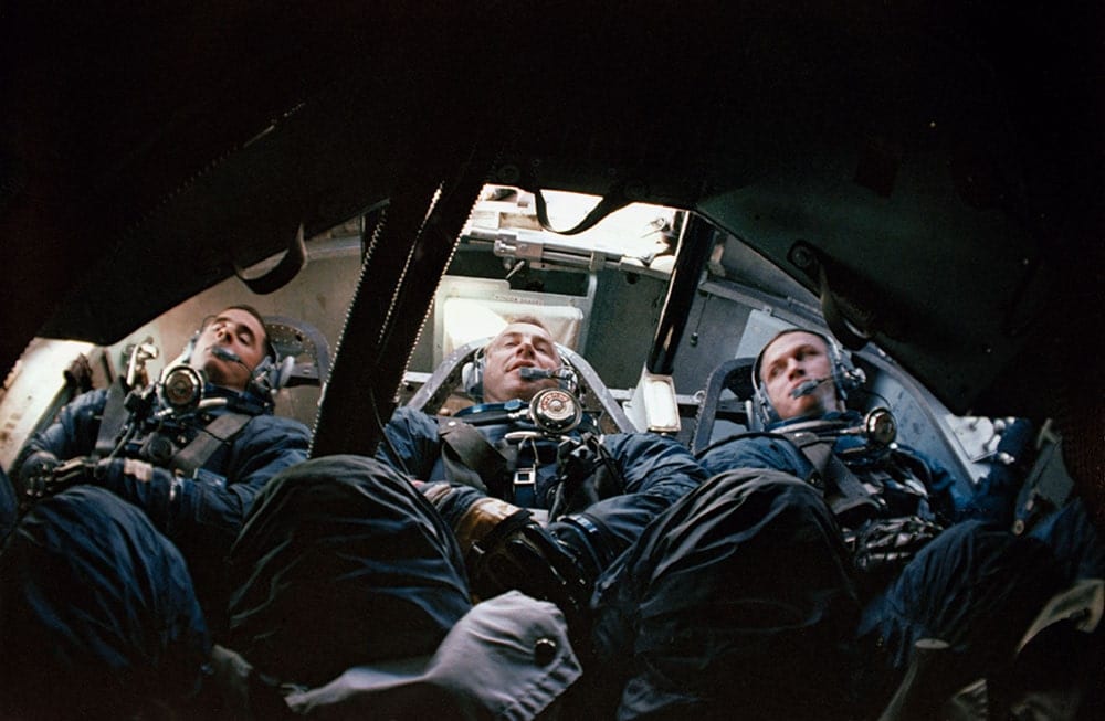 The first humans to leave Earth and travel to the Moon on Apollo 8 (left to right): command module pilot Jim Lovell, lunar module pilot Bill Anders, and commander Frank Borman.