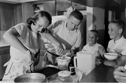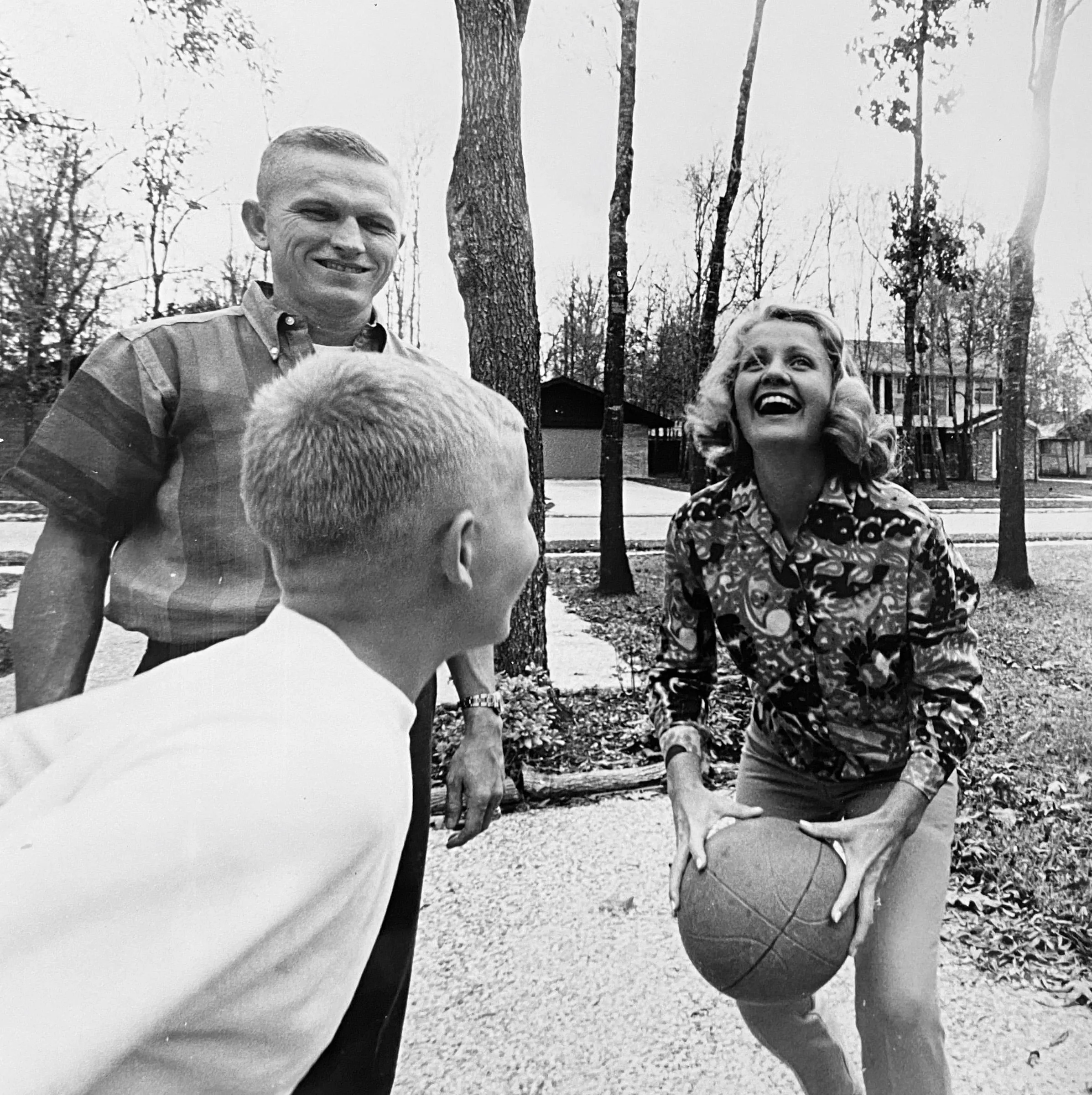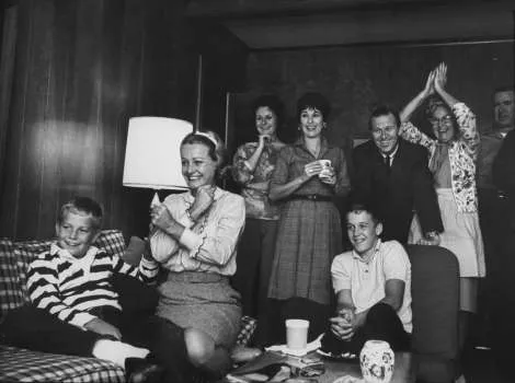 Susan celebrates with family and friends following Frank’s successful splashdown after the Gemini 7 mission, December 1965
