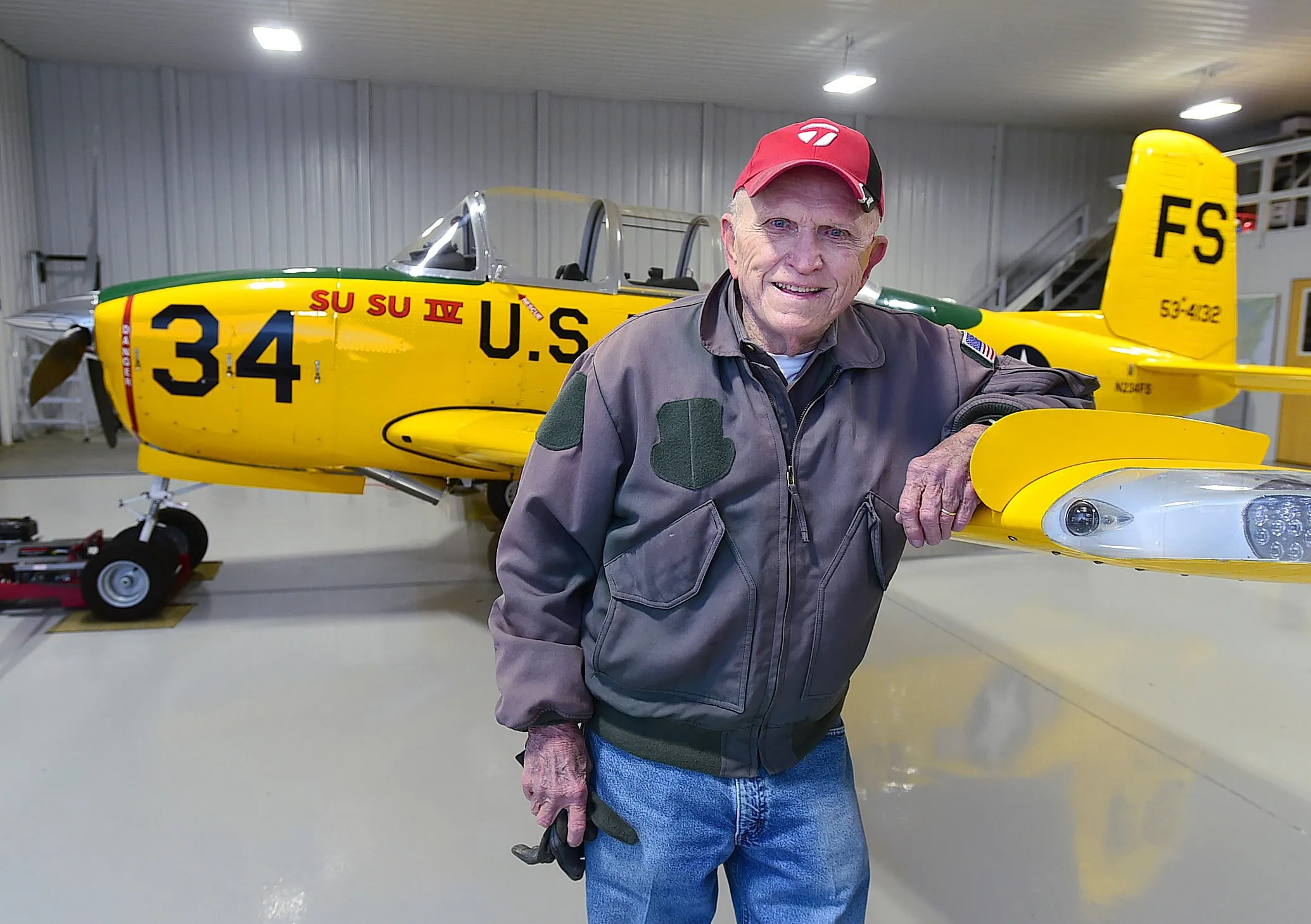 Frank with his vintage 1954 USAF T-34 trainer still flying on the fiftieth anniversary of Apollo 8, December 2018.