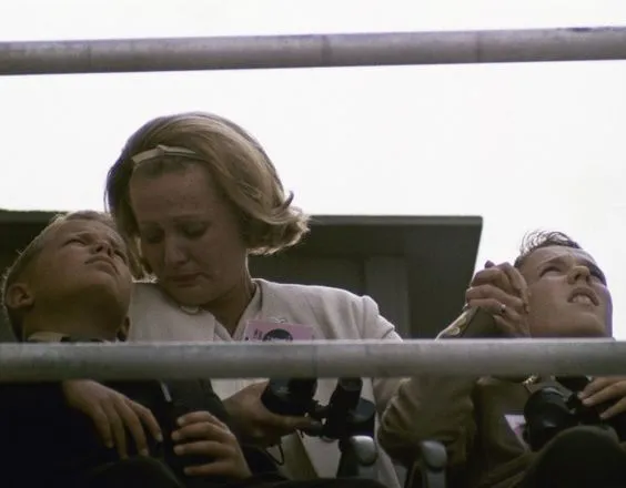 Susan and the boys watch the launch of Gemini 7, December 1965.