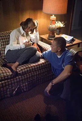 Frank and Susan getting ready for one of many public events they attended as “Team Borman.”